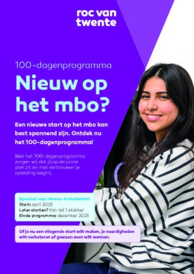 VO-leerlingen die zich aanmelden voor een niveau-4 opleiding bij ROC van Twente, kunnen vanaf april starten met het 100-dagenprogramma.